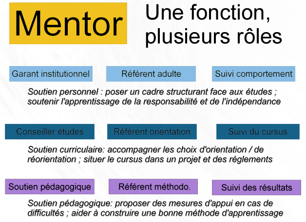 Nos formations se situent à une transition entre l'école obligatoire et les études tertiaires. Dans ce contexte, il s'agit pour chaque élève d'apprendre à gérer ses études de manière responsable et autonome. Le mentor offre un soutien et un appui pour accompagner l'élève dans cette démarche, particulièrement en début de formation.